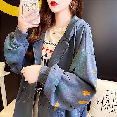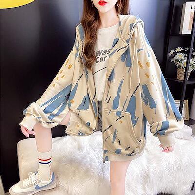 秋新作 パーカー ジャケット レディース 柄 長袖ジップアップ パーカー チュニック ゆったり 体型カバー カジュアル アウター