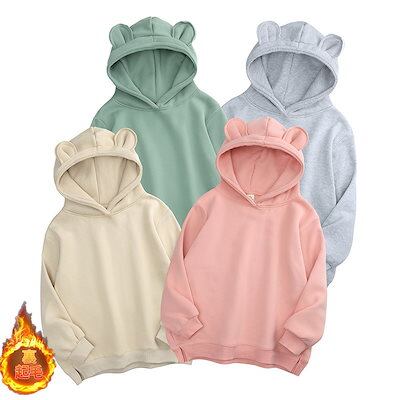 パーカー プルオーバー レディース トップス 長袖 裏起毛 フード付き 耳付き スリット シンプル 無地 かわいい カジュアル