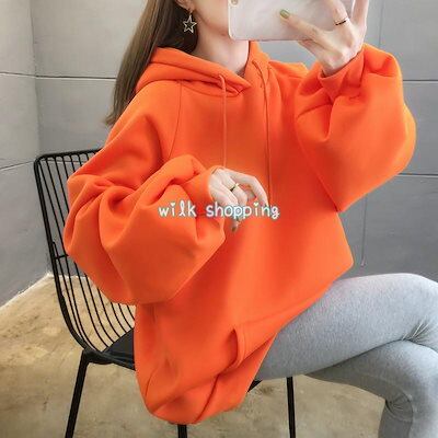 パーカー レディース 裏起毛 プルオーバー トップス フード ボリューム袖 スウェット 秋冬 厚手 シンプル 体型カバー 大人 ナチュラル アウター