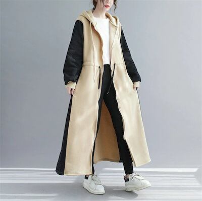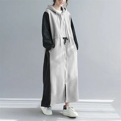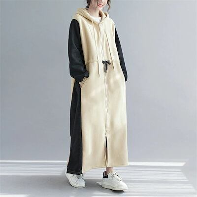 裏起毛 パーカー ワンピース 秋冬 ワンピース 長袖 大きいサイズ 冬 ワンピース 長袖 レディース 前開き 配色 カジュアル 上品 大人可愛い フード付き きれいめ ジップアップ ロング丈 ウエスト