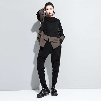 パーカー レディース 異素材レイヤード風トップス スウェット レディース 長袖 モード系 個性的 スウェット トレーナー プルオーバー トップス ドッキング フェイクレイヤード 重ね着風 無地 大人