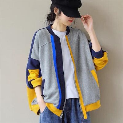 スタジャン レディース スウェット カーディガン トレーナー トップス パーカー ジャケット カットソー 春 秋 レディース ライトコート 羽織り ビッグシルエット 大人かわいい 大人 大きいサイズ
