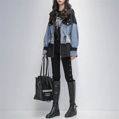 パーカー コート レディース 秋 春 コットン レディース 大人 パーカーコート デニム 異素材 切り替え 無地 レディース ブルゾン レディース きれいめ 秋コート 春コート アウター 無地 長袖
