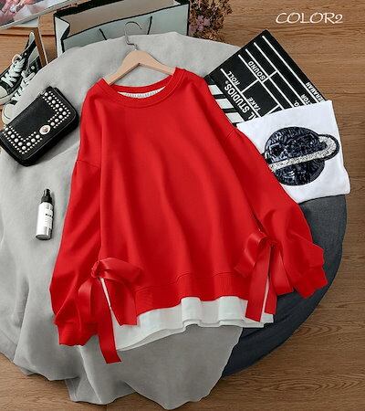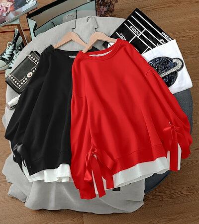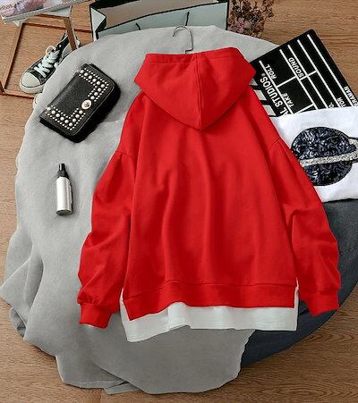 パーカー ブラウス 上着 レディース 長袖 秋 春 プルオーバー ドッキング フード付き フードなし 無地 シンプル カジュアル オシャレ ゆったり