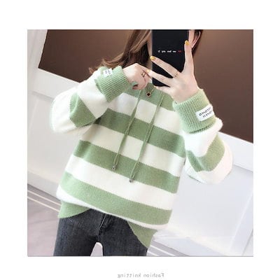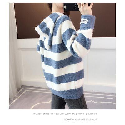 ニット ニットパーカー ニットセーター ボーダー柄 レディース 長袖 トップス 無地 丸首 カジュアル ニットウェア 韓国風 お洒落 体型カバー 綺麗