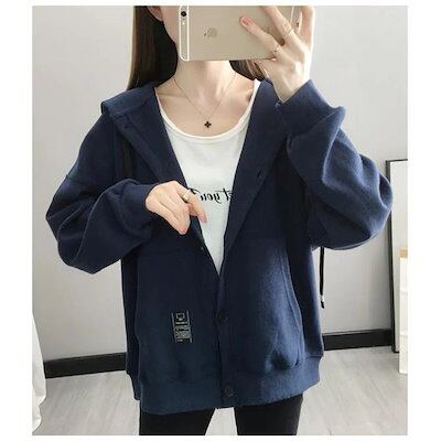 パーカー レディース フード付き 秋冬トップス 体型カバー 前開き ボタン ルームウェア ウォーキング 長袖 カジュアル 韓国風 スウェット 着痩せ