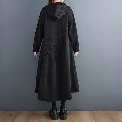 ワンピース ロングワンピース マキシワンピース 秋冬 レディース 長袖 ロングワンピ aラインワンピース パーカーワンピース 冬 黒ワンピース 体型カバー マキシ丈 着痩せ 大きいサイズ フレア 無地