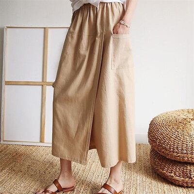 ワイドパンツ スカート レディース 綿麻風 パンツ 夏 ガウチョパンツ フレアパンツ スカート見えるパンツ ウエストゴム バギーパンツ 大きいサイズ ゆったり リラックス ビーチ 海 爽やか ふんわり