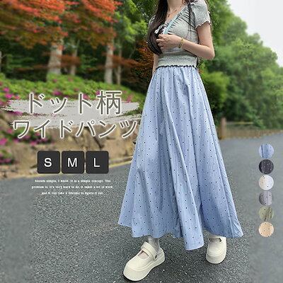 ワイドパンツ ドット柄 レディース 夏 Aライン イージーパンツ 涼しい パンツ 水玉 フレアパンツ ウエストゴム ロングパンツ ズボン ボトムス 大きいサイズ ゆったり 体型カバー 着痩せ カジュア