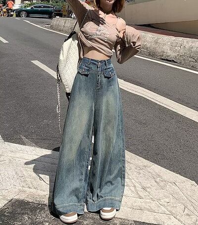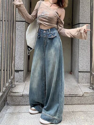 デニムワイドパンツ レディース ワイドパンツ デニムパンツ フレアパンツ ジーンズ ジーパン ロングパンツ 大きいサイズ ゆったり ハイウエスト バギーパンツ ボトムス ロング丈 ズボン カジュアル