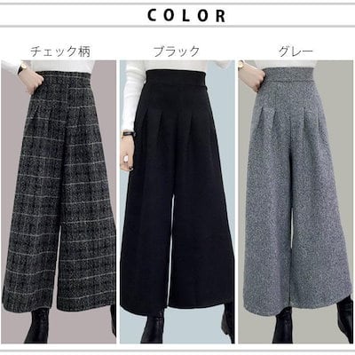 ワイドパンツ レディース ガウチョ キュロット フレア スカーチョ スカンツ ハイウエスト 九分丈 ロング丈 チェック 大きいサイズ 厚手 暖かい 起毛 秋 冬 秋冬