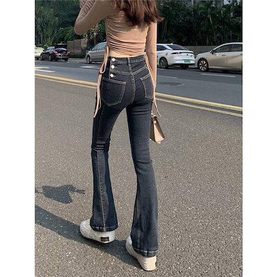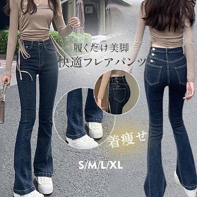 デニムパンツ レディース フレアパンツ デニム ロングパンツ ハイウエスト 美脚 脚長 韓国 スリム デイリーコーデ カジュアル ジーンズ おしゃれ