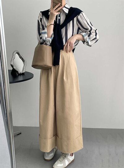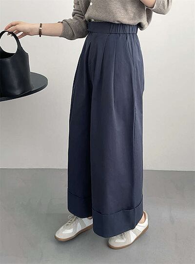ワイドパンツ レディース 春 夏 秋 パンツ ロングパンツ ボトムス リラックスパンツ ウエストゴム ポケット タックパンツ コットン 綿 無地 フレアパンツ ガウチョ 落ち感 オフィス カジュアル