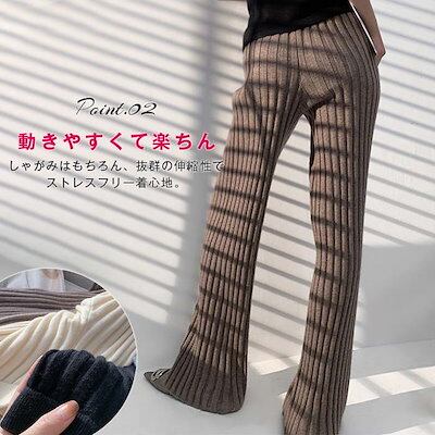 ニットパンツ フレアパンツ レディース パンツ ボトムス リブニット 秋冬 ゆったり ワンマイルウェア 大人 ニットフレアパンツ 秋 冬 イージーパンツ フレアパンツ おしゃれ きれいめ カジ
