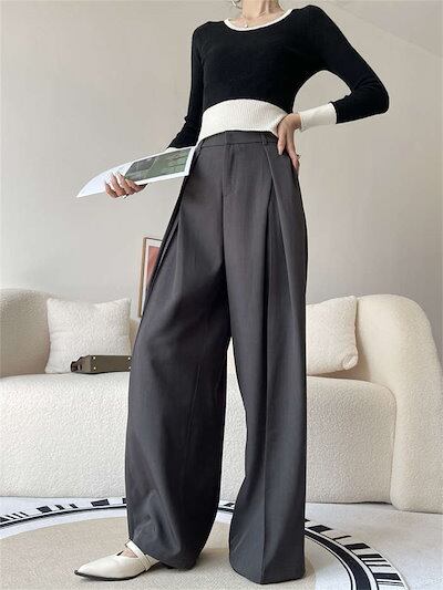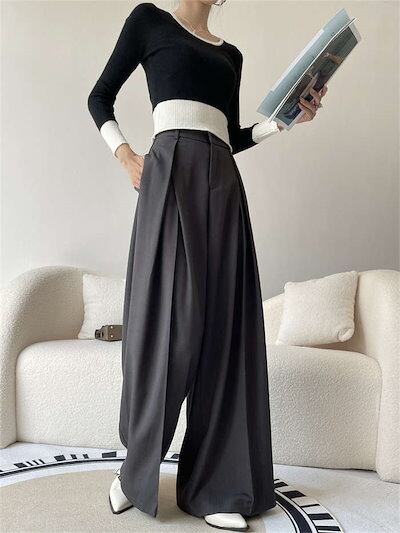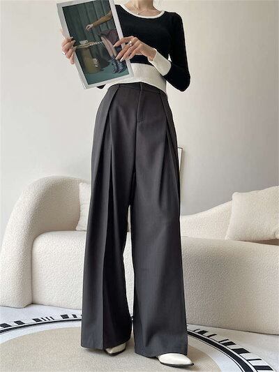 パンツ ワイドパンツ タックパンツ レディース 春 夏 秋 冬 ボトムス タック フレア ワイド ロング スーツパンツ ロングパンツ ガチョウパンツ ハイウエスト ポケット付き ゆったり シンプル 洗