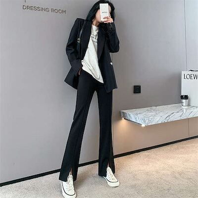 ロングパンツ レディース スリットパンツ 春 秋 秋 無地 スリット パンツ きれいめ ストレッチパンツ 9分丈 ロング丈 ボトムス ズボン フレア スラックス 黒パンツ フロントスリット おしゃれ