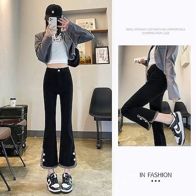 デニムボトムス ワイドパンツ 韓国ファッション ジーンズ レディース デニム ズボン 夏秋 ハイウエスト パンツ フレアパンツ美脚