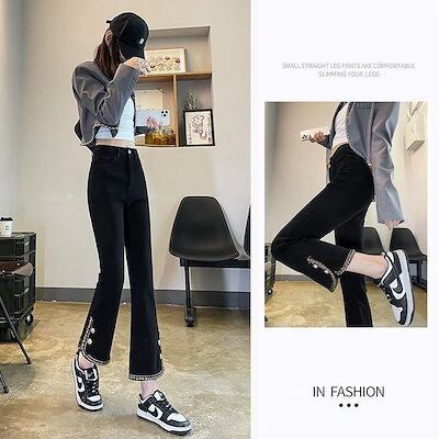 ひんやりボトムスデニムボトムス ワイドパンツ 韓国ファッション ジーンズ レディース デニム ズボン 春秋 ハイウエスト パンツ フレアパンツ美脚