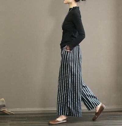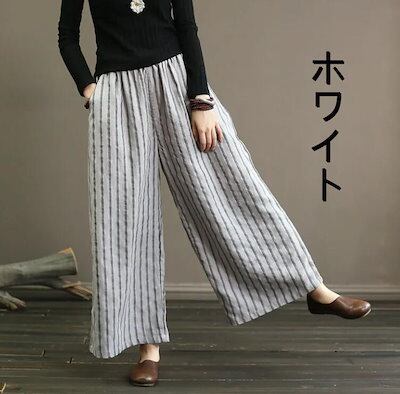 ボトムス 夏 春 秋 ワイド バギーパンツ ガウチョパンツ フレアパンツ ワイドパンツ スカーチョ ロング ストライプ柄 パンツ カジュアル 大きいサイズ ゆったり レディース 体型カバー