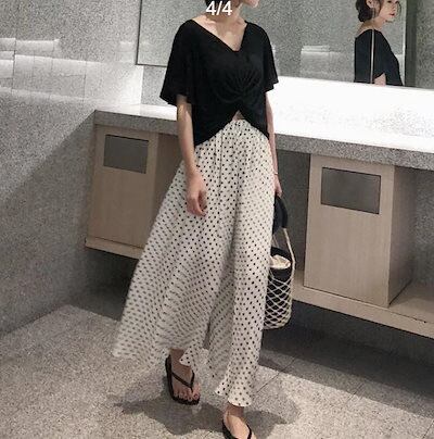 体型カバー カジュアル 春 大きいサイズ 夏 ゆったり バギーパンツ レディース ドット フレアパンツ ワイドパンツ スカーチョ ボトムス ワイド パンツ 秋 ガウチョパンツ 水玉 ロング