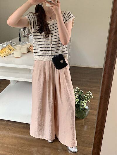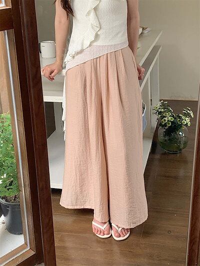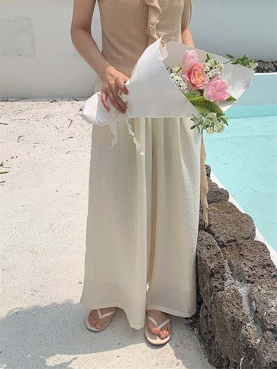パンツ レディース ワイドパンツ ロング丈 マキシ丈 ボトムス 春 夏 秋 無地 ガウチョパンツ スカーチョ フレアパンツ ウエストゴム 綿 コットン ゆったり ポケット付き カジュアル 快適 リラッ