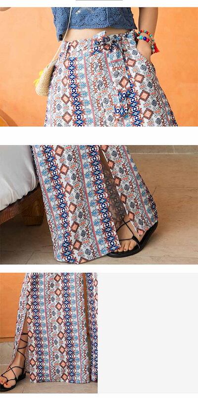 ワイドパンツ レディース ロング パンツ 総柄 きれいめ 夏 春 薄手 涼しい ロングパンツ ワイド ガチョウ スカンツ ハイウェスト 柄パンツ フレアパンツ 美脚パンツ ゆったり シフォン ボヘミア