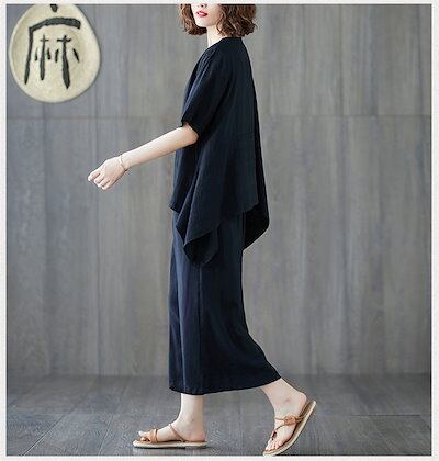 セットアップ レディース カジュアル 夏 綿麻風 2点セット 上下セット チュニック ブラウス ワイドパンツ tシャツ 半袖 バギーパンツ イージー フレアパンツ 涼しい カジュアル ナチュラル 大き