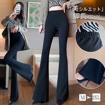 フレアリブパンツ レディース ロング ボトムス パンツ レギンス インナーパンツ ロングパンツ ズボン 長ズボン ベルボトム フレアリブ リブパンツ ハイウエスト ウエストゴム ストレッチ 無地 快適