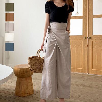ワイドパンツ 春 夏 レディース リネンパンツ きれいめ リボンベルト付き リネンパンツ 綿 麻 リネンワイドパンツ アンクル丈 美脚 ガウチョパンツ フレアパンツ ロングパンツ 心地よい 着痩せ 通