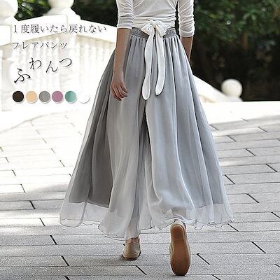 ガウチョパンツ ワイドパンツ レディース 春 夏 フレアパンツ ガウチョ スカンツ スカーチョ ロングパンツ ズボン パンツ ロング丈 ロング シフォンパンツ ウエストゴム 大きいサイズ 体型カバー