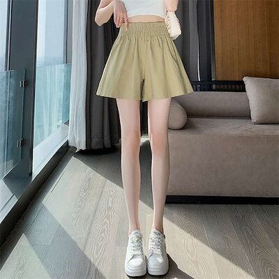 ショートパンツ レディース 夏 きれいめ 綿麻 コットン ハイウエスト ショーツ 薄手 薄い 涼しい 冷感 ウエストゴム キュロット パンツ 短パン コットンパンツ レディースパンツ フレア ショー