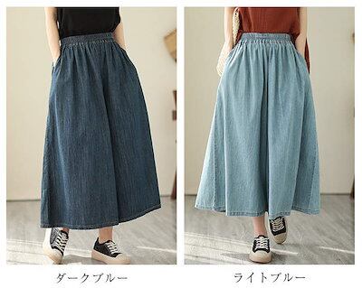 パンツ デニム レディース7分丈 ワイドパンツ フレアパンツ チノパンツ 春夏 涼しい ボトムス 大人 ゆったり ワイド 楽ちん 無地 シンプル リラックス カジュアル きれいめ お洒落 体型カバー