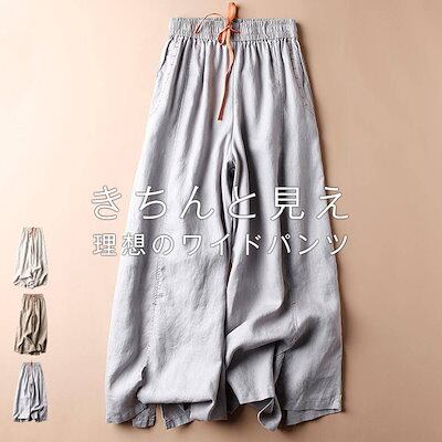 パンツ レディース ワイドパンツ ロング丈 チノパンツ 夏 涼しい 綿麻風 フレアパンツ ボトムス 大人 ゆったり 薄手 ワイド 楽ちん 無地 シンプル リラックス カジュアル きれいめ お洒落 体型