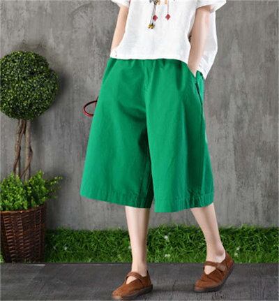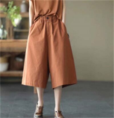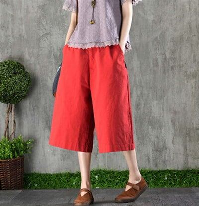 ワイドパンツ 7分丈 ガウチョパンツ 夏 無地 ボトムス ウエストゴム 涼しい ショートパンツ パンツ レディース ハーフパンツ 膝丈 ふんわり リラックス フレアパンツ ルーズ ハイウエスト カジュ