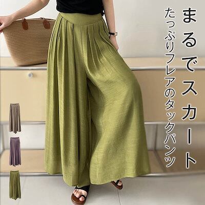 パンツ レディース スカーチョ ワイドパンツ 夏 秋 無地 ボトムス 涼しい Aライン ガウチョパンツ マキシ ロング 春 フレア ズボン フレアパンツ きれいめ 大きいサイズ ナチュラル 体型カバー