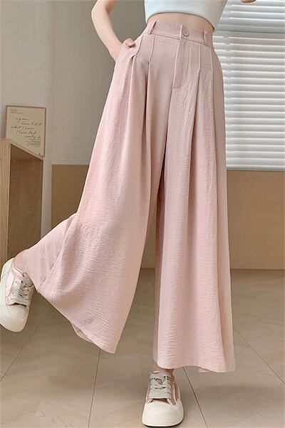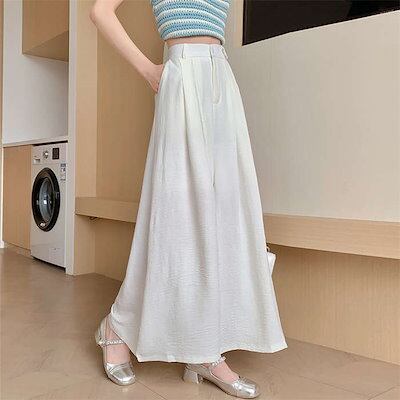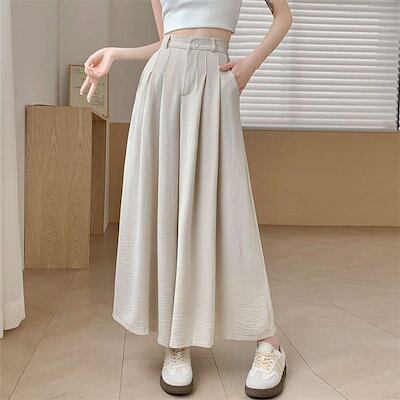 パンツ レディース スカーチョ ガウチョパンツ 春 夏 冷感 薄手 無地 ロング丈 すっきり 綿麻風 清涼感 ワイドパンツ タックパンツ ボトムス スカート風 ウエストゴム フレアパンツ ゆったり 大