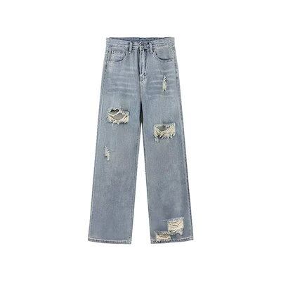 大人気 デニムパンツ 秋 新作 パンツ デニム ジーンズ ワイド ストレート ハイウエスト 細見え ウォッシュ加工 ダメージ 春 カジュアル ファッション お出かけ レディース 脚長効果 美脚効果