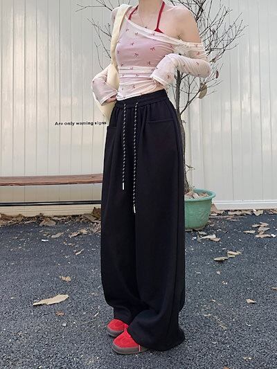 2024 秋 パンツ ロング丈 ハイウエスト ズボン 美脚効果 脚長効果 細見えサイド 冬 春 おしゃれ かわいい 韓国系ファッション レディース お出かけ トラック