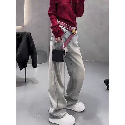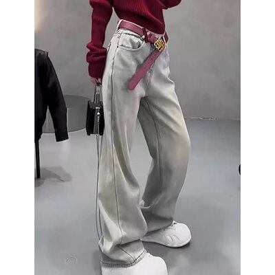 デニムパンツ 春秋の新作 ルーズ 薄手 ストレート ワイドパンツ パーソナリティ 色の衝突 ポケット ジーンズ レディース 韓国