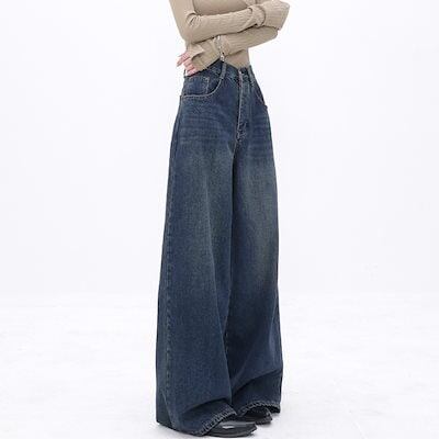 ワイドパンツ アメリカンスタイル レトロ ジーンズ レディース 2024夏&秋 ハイウエスト ゆったり ストレート モップパンツ 美脚 韓国