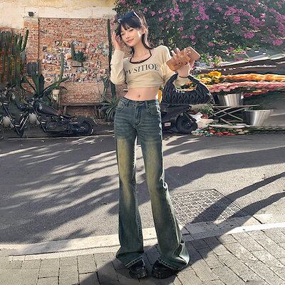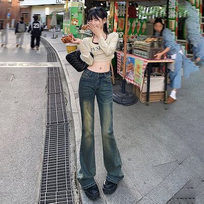 2024 初秋 デニムパンツ パンツ デニム ジーンズ ワイド ストレート ハイウエスト 脚長効果 美脚効果 細見え ウォッシュ加工 カジュアル おしゃれ かわいい レディース 韓国ファッション