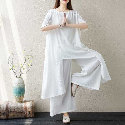 「ファットガール」 2024夏新品 上下セット 綿麻 ブラウス+ワイドパンツ リネン 大きいサイズ 体型カバー レディース ホワイト セットアップ ヨガウエア ピラティス メガ割
