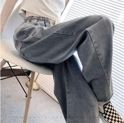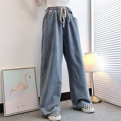 2024新作 ワイドパンツ デニムパンツ レディース ボトムス ポケット付 ストレッチ ズボン ロング丈 春 夏 無地 ひんやり ストレート ジーンズ ハイウエスト ウエストゴム ゆったり リラックス