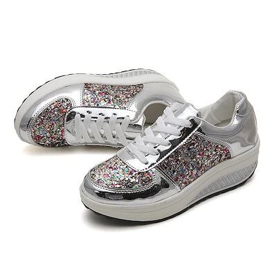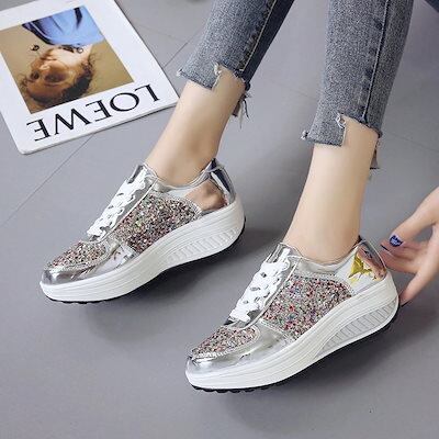 特にスパンコール超軽量スポーツシューズミラード大型ミラーロッキングシューズレディースシューズブラ