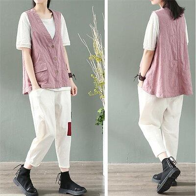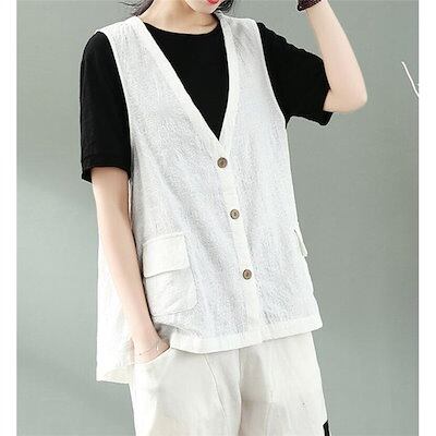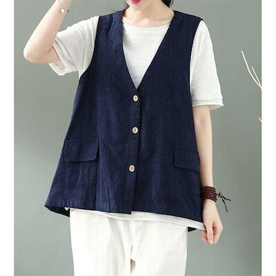 ベスト レディース 綿麻 ジレ ジャケット 前開 アウター 春 カジュアル 夏 20代 30代 40