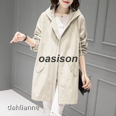 マウンテンパーカー レディース トレンチコート 春秋アウター ブルゾン フード付き 羽織り ジャケット 裏地あり ミディアム丈 ライトコート