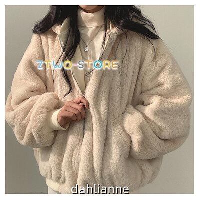 リバーシブル ボアブルゾン フリース ジャケット レディース フード付き ジャンパー フェイクファー コート カーディガン アウター 秋 冬 ジップア