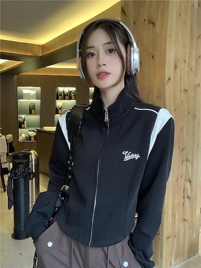 2024春夏 アウター ショート ブルゾン かわいい 長袖 カジュアル ファッション フルブルゾン トップスハイスタンド ストリート レディースお出かけトラック