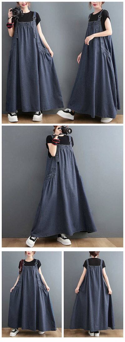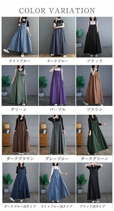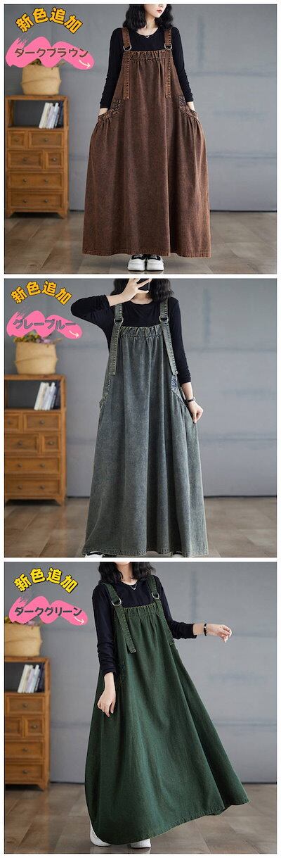新タイプ/新色追加 高評価 人気 ジャンパー スカート サロペット ワンピース ロングワンピース デニムジャンスカ 秋冬 レディース オールインワン ジャンパーワンピ 体型カバー