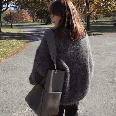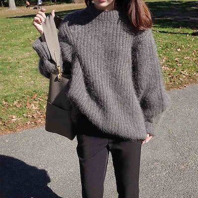 レディース ニット セーター クルーネック ざっくり ゆるシルエット 長袖 トップス カジュアル 大人可愛い シンプル おしゃれ お出かけ デイリー 普段着 学生 ママコーデ デート グレー S M